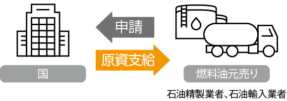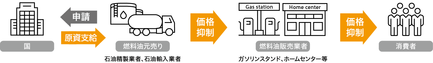 石油元売・輸入事業者に価格上昇を抑える原資を支給することにより、ガソリンなどの卸価格の上昇を抑え、ガソリン小売価格の急騰を抑えるものです。